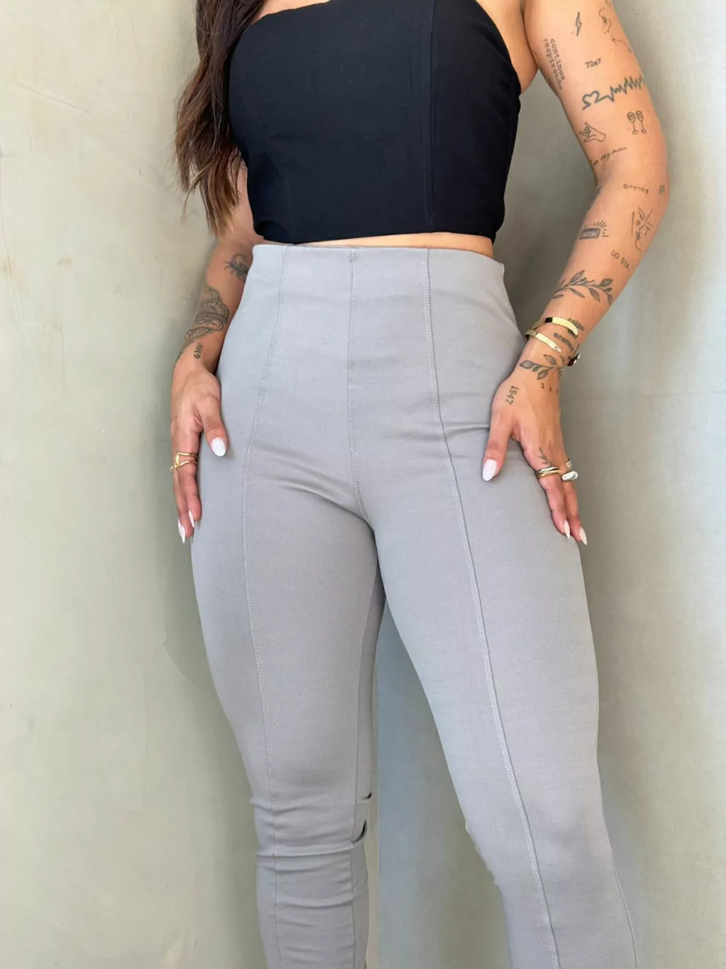 Com elastano na composição, oferece liberdade nos movimentos, e o cós alto com elástico na cintura garante ajuste perfeito ao corpo. A abertura lateral na barra traz um charme discreto e atual, valorizando o caimento da peça com um toque de modernidade.