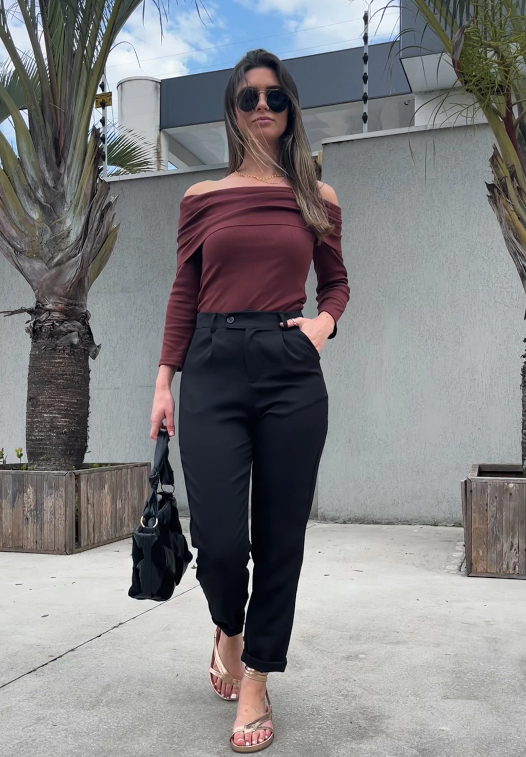 Calça com corte em alfaiataria, cintura alta, possui bolsos funcionais, e fechamento em zíper e botão. Modelo elegante e estiloso com um tecido super confortável e fresco.