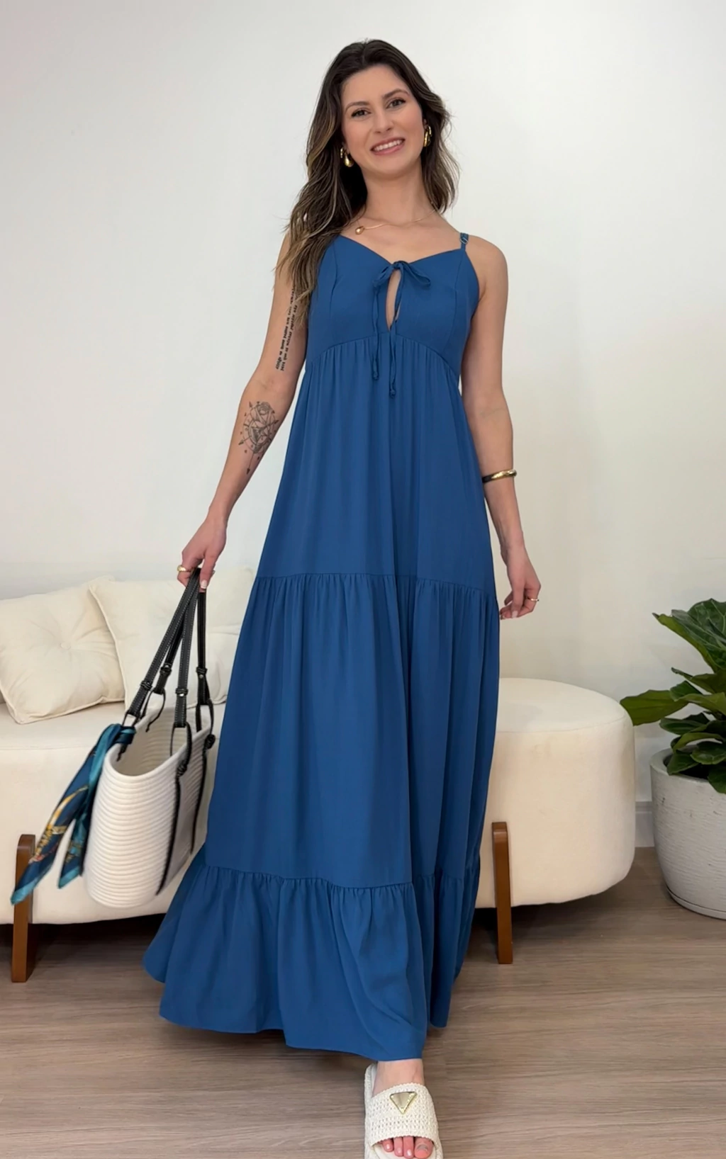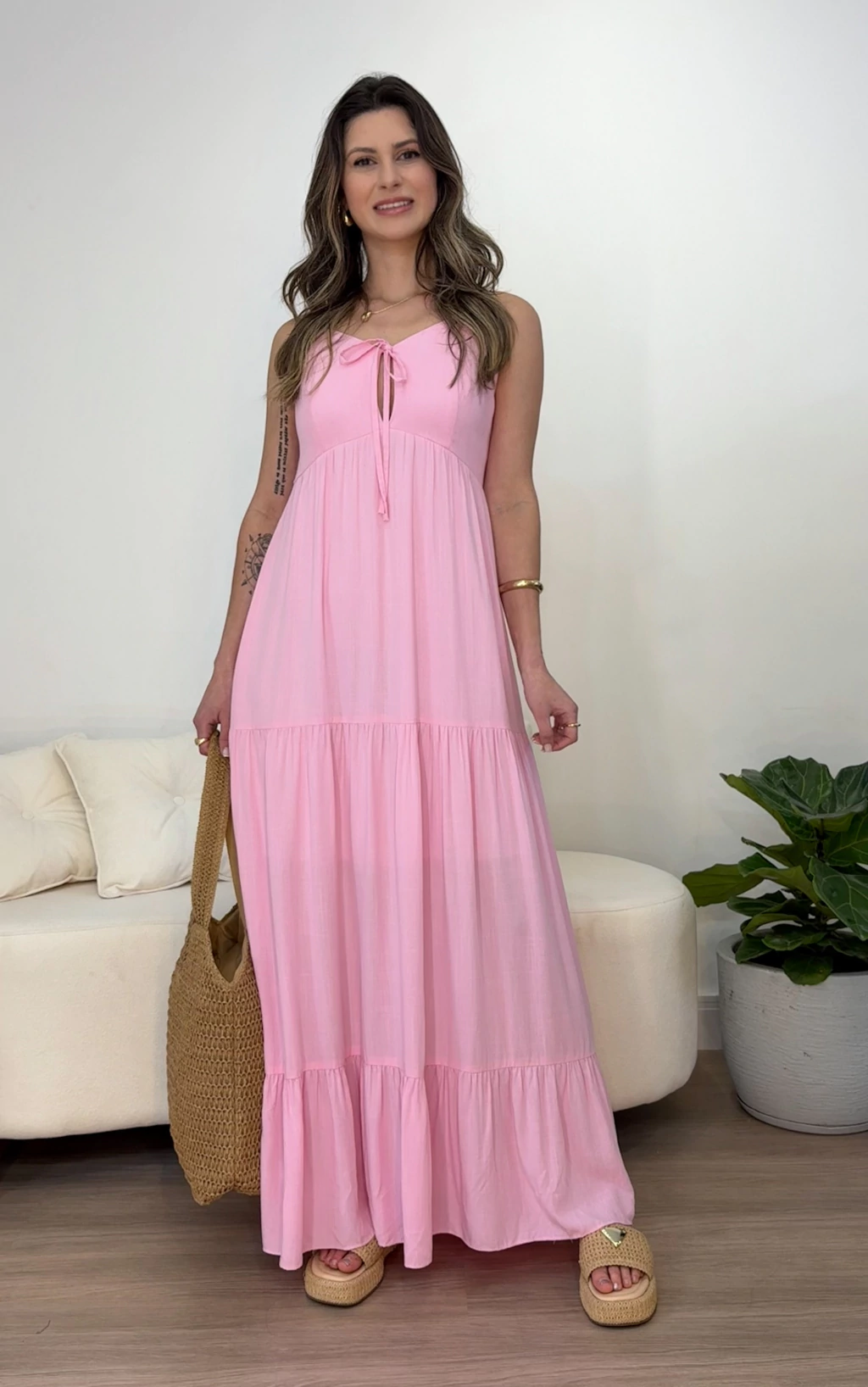 Confeccionado em viscolinho, um tecido leve com toque suave e aspecto que remete ao linho, este vestido oferece frescor, conforto e um caimento fluido – ideal para os dias mais quentes.