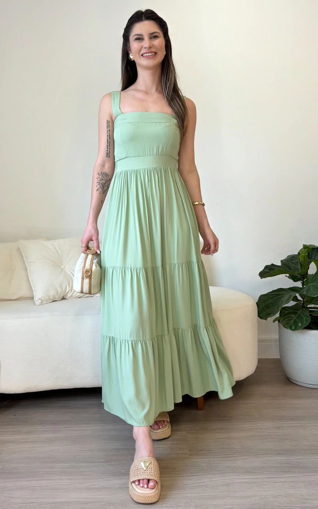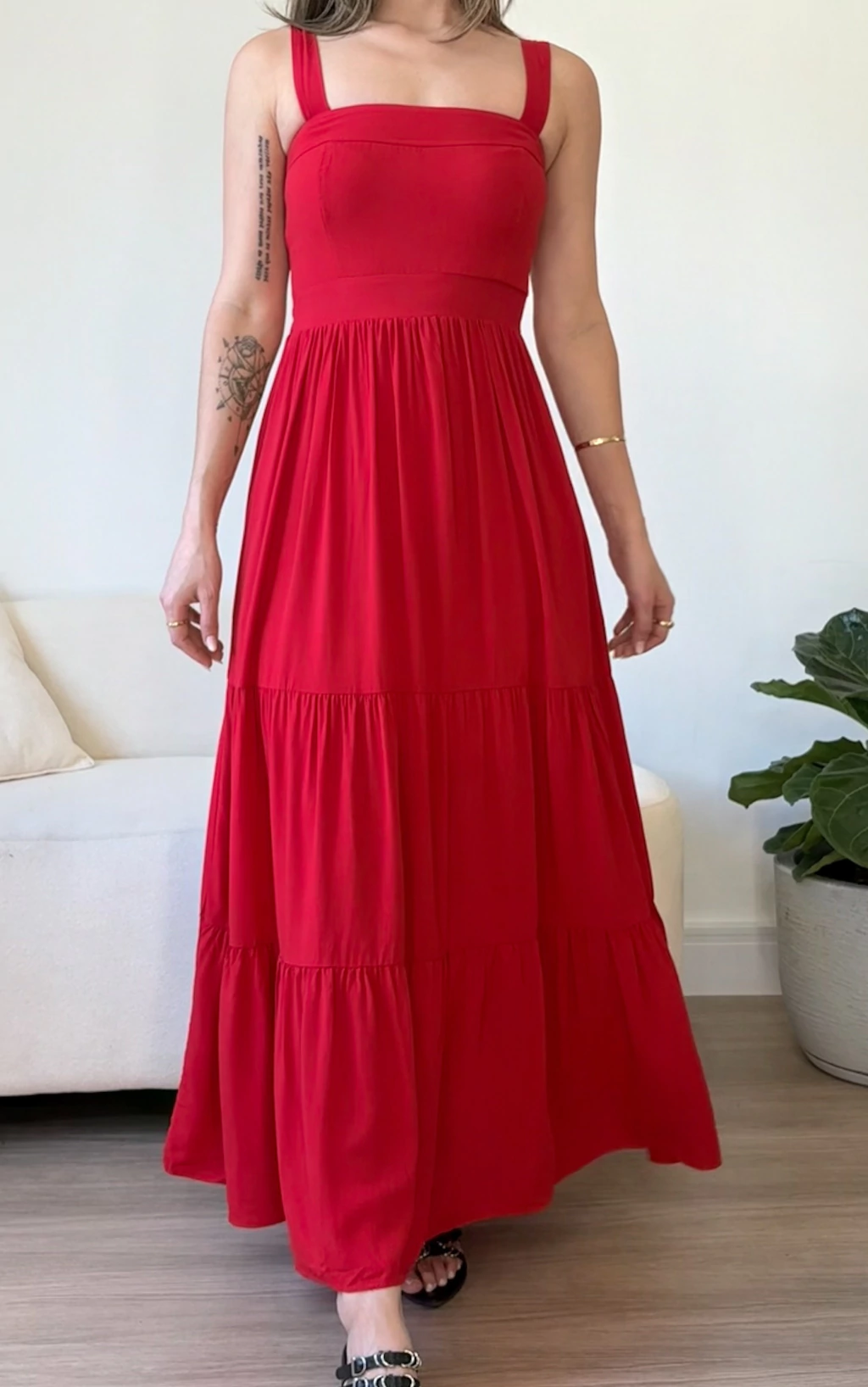 - Corte acinturado, realçando a silhueta de forma sutil e feminina.