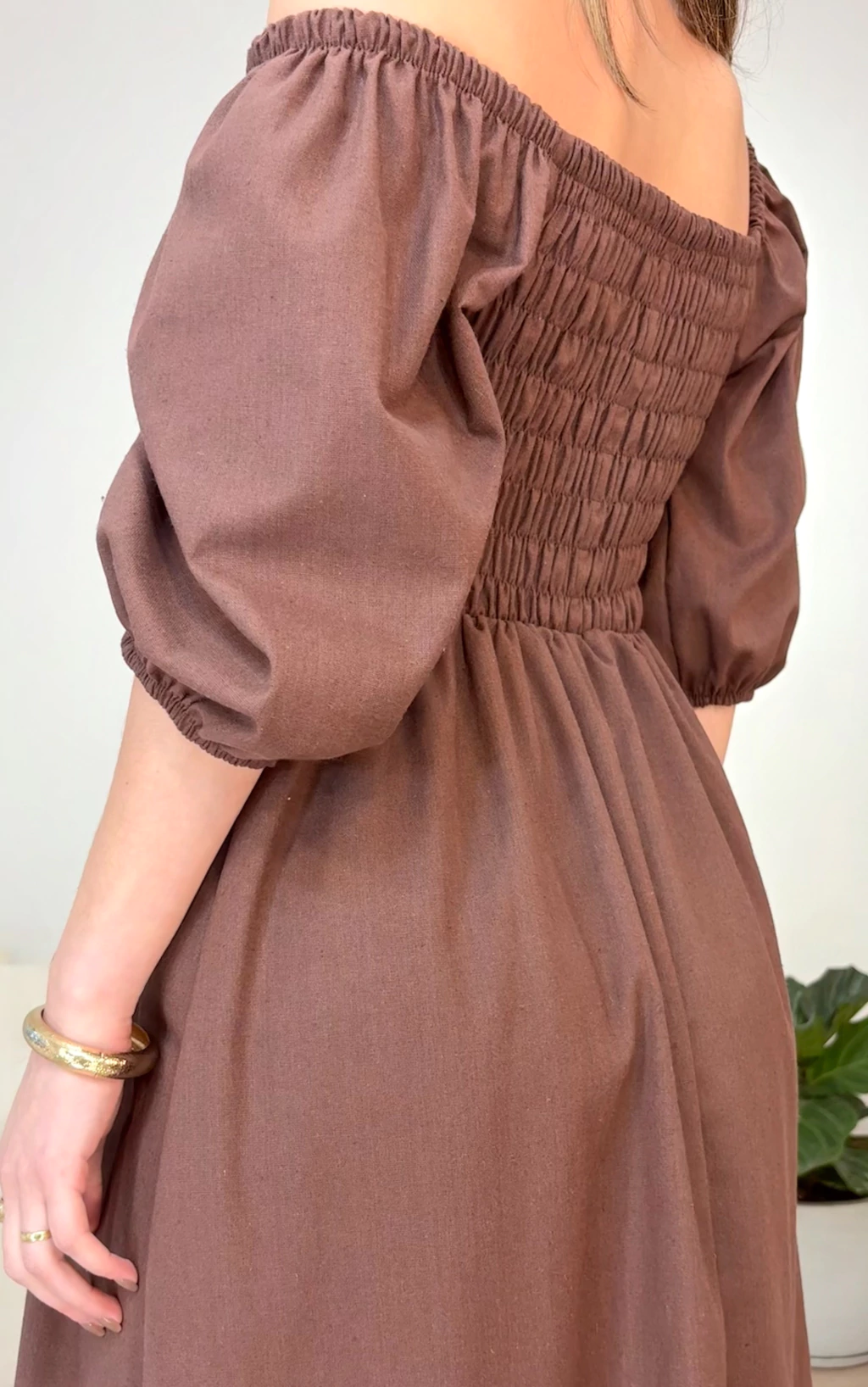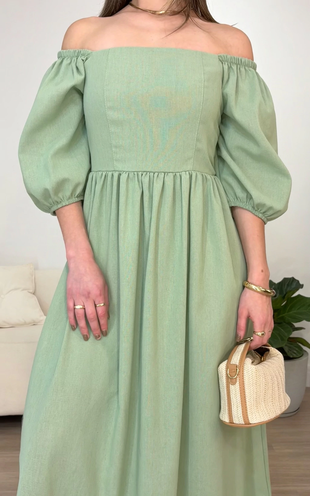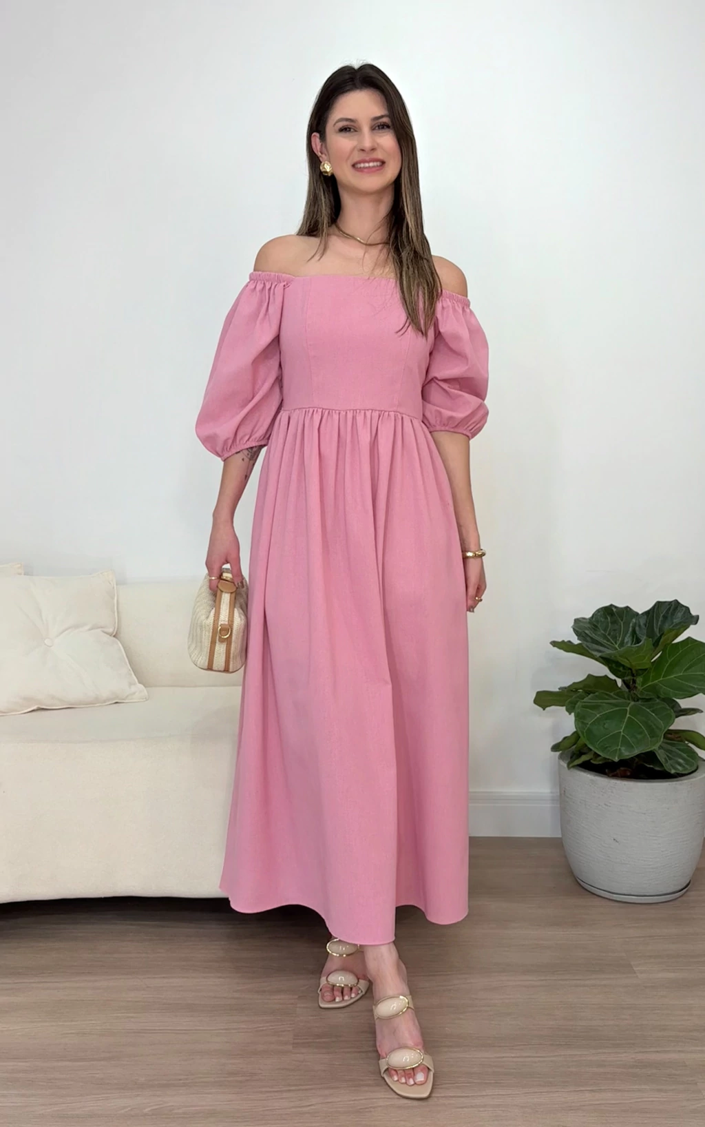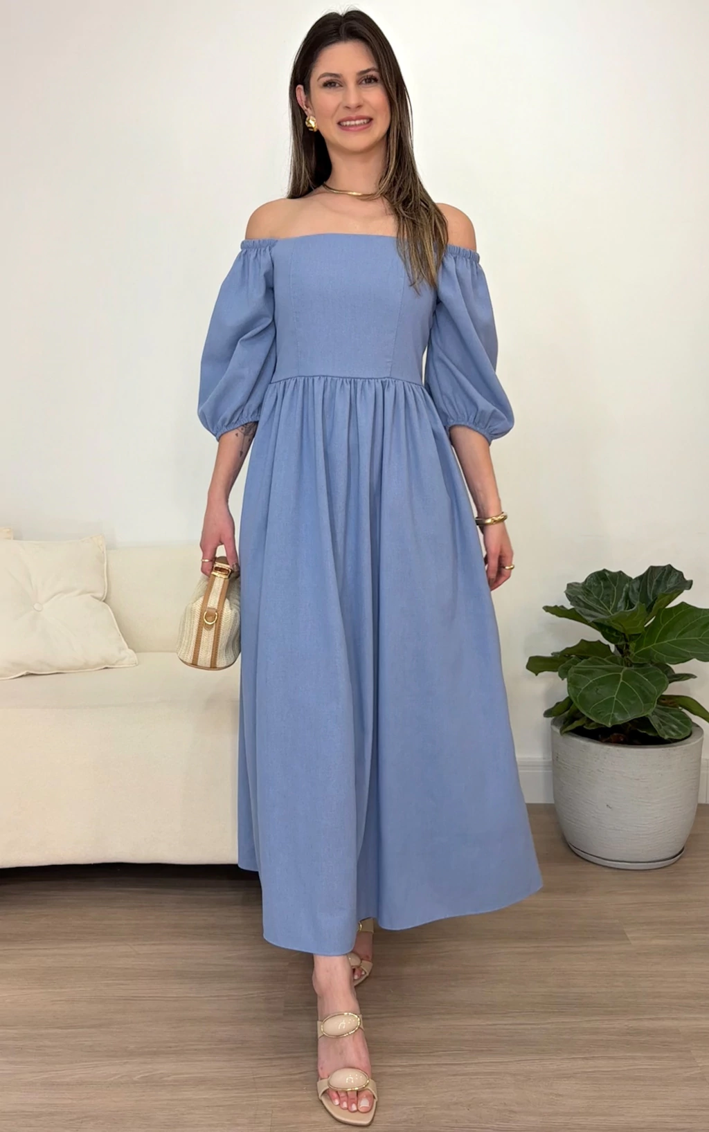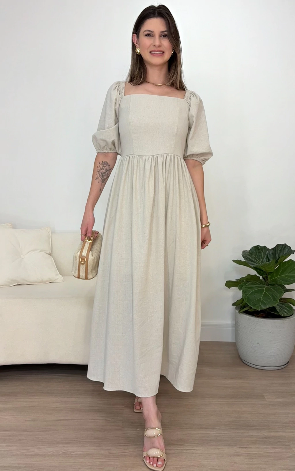 Um longuete com design que exala romantismo e sofisticação, este vestido é a escolha ideal para quem busca elegância clássica em cada detalhe. Confeccionado em linho de textura encorpada, ele une leveza e estrutura, garantindo conforto e caimento impecável. As mangas princesa e o elástico nas costas proporcionam um ajuste perfeito ao corpo, realçando a feminilidade de forma delicada e atemporal.