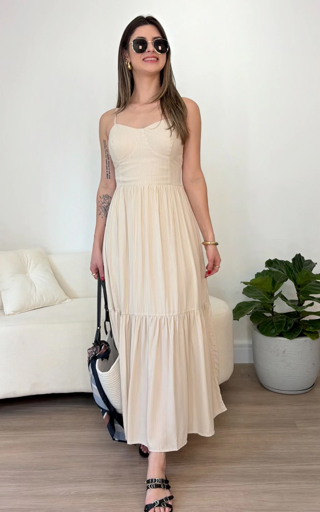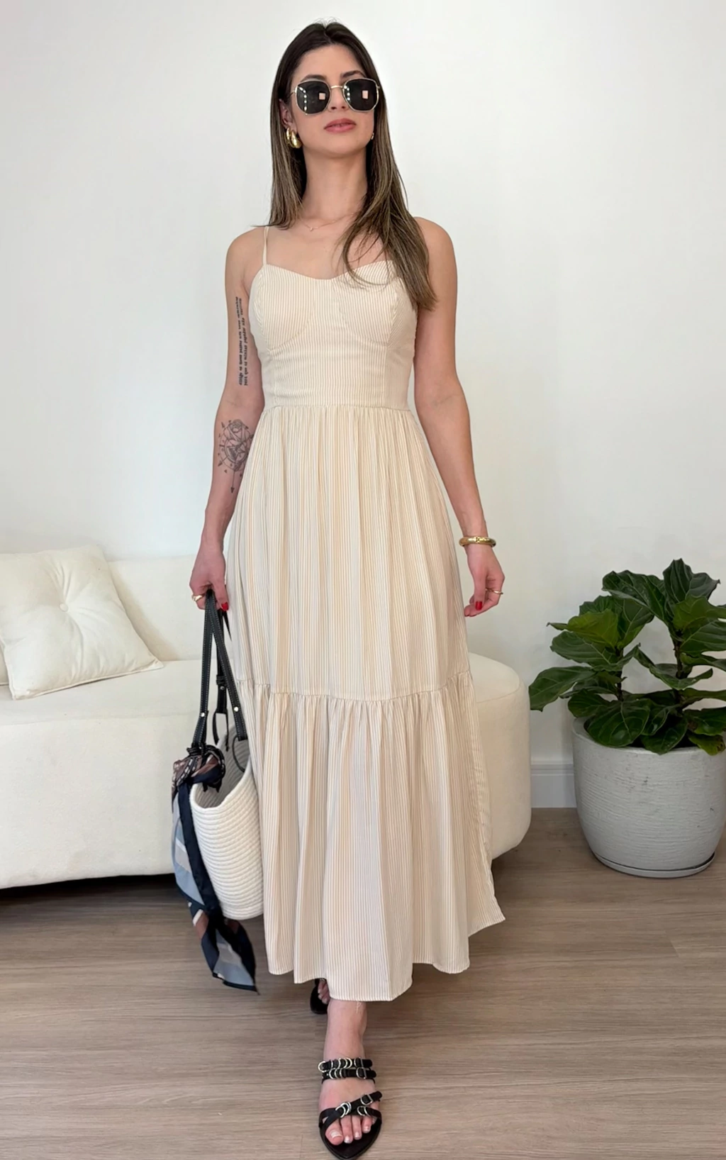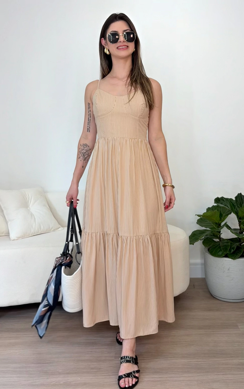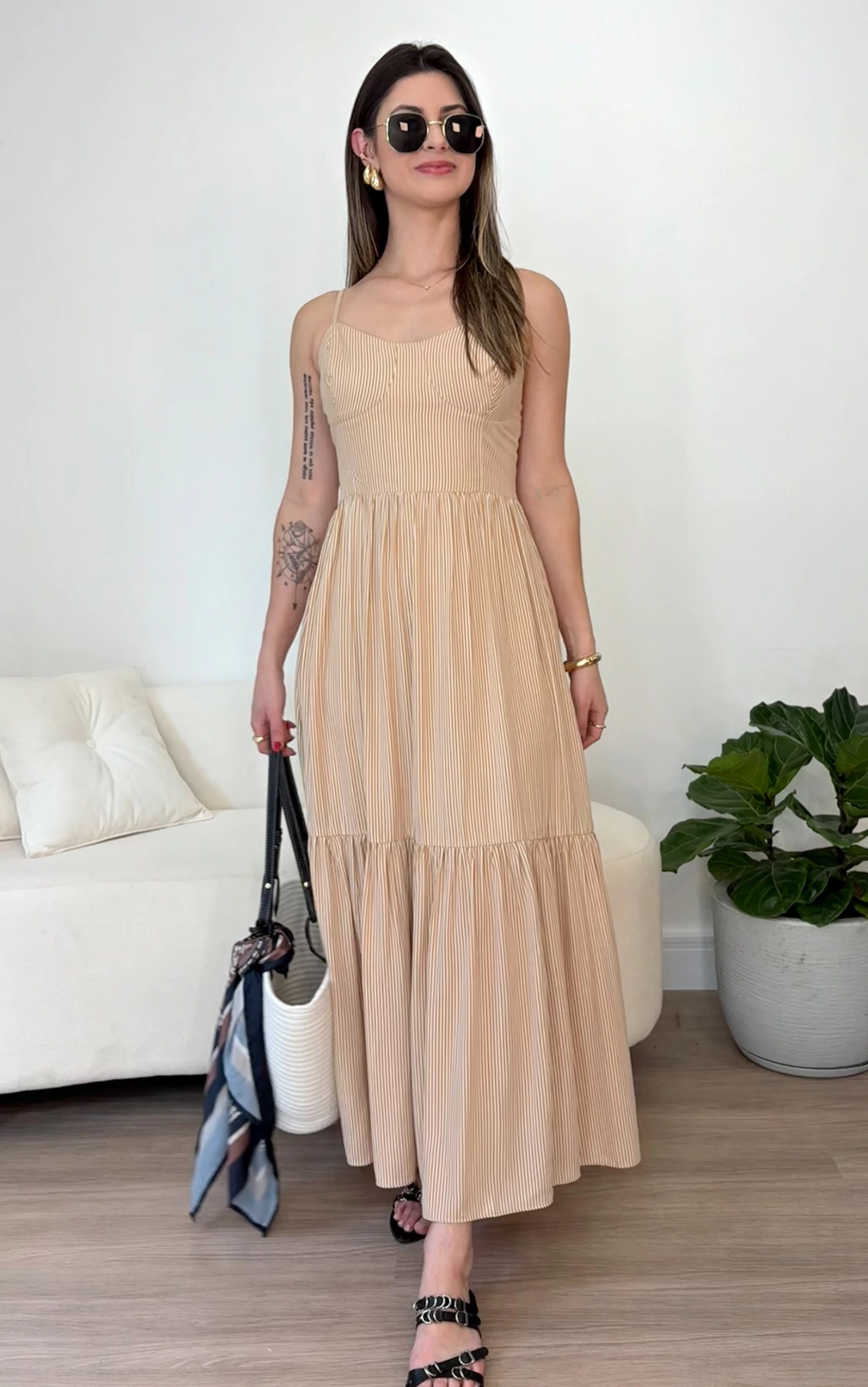 O Vestido Mavie combina sofisticação e praticidade em uma modelagem que valoriza a silhueta. Confeccionado em viscolinho, ele possui um toque leve e natural, ideal para composições versáteis. O busto meia-taça proporciona sustentação sutil, enquanto as alças reguláveis garantem um ajuste perfeito.