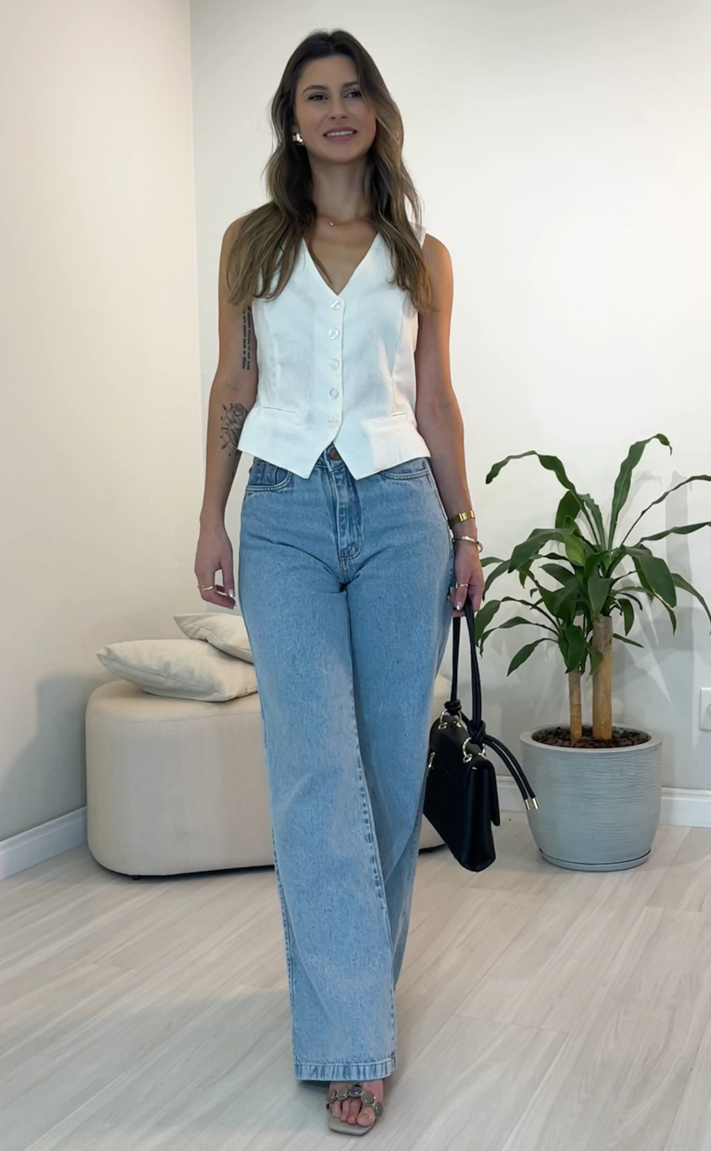 Wide Leg Jeans é a peça indispensável para um look moderno e versátil. Com modelagem reta e ampla, ele alonga a silhueta e proporciona um caimento sofisticado sem abrir mão do conforto.